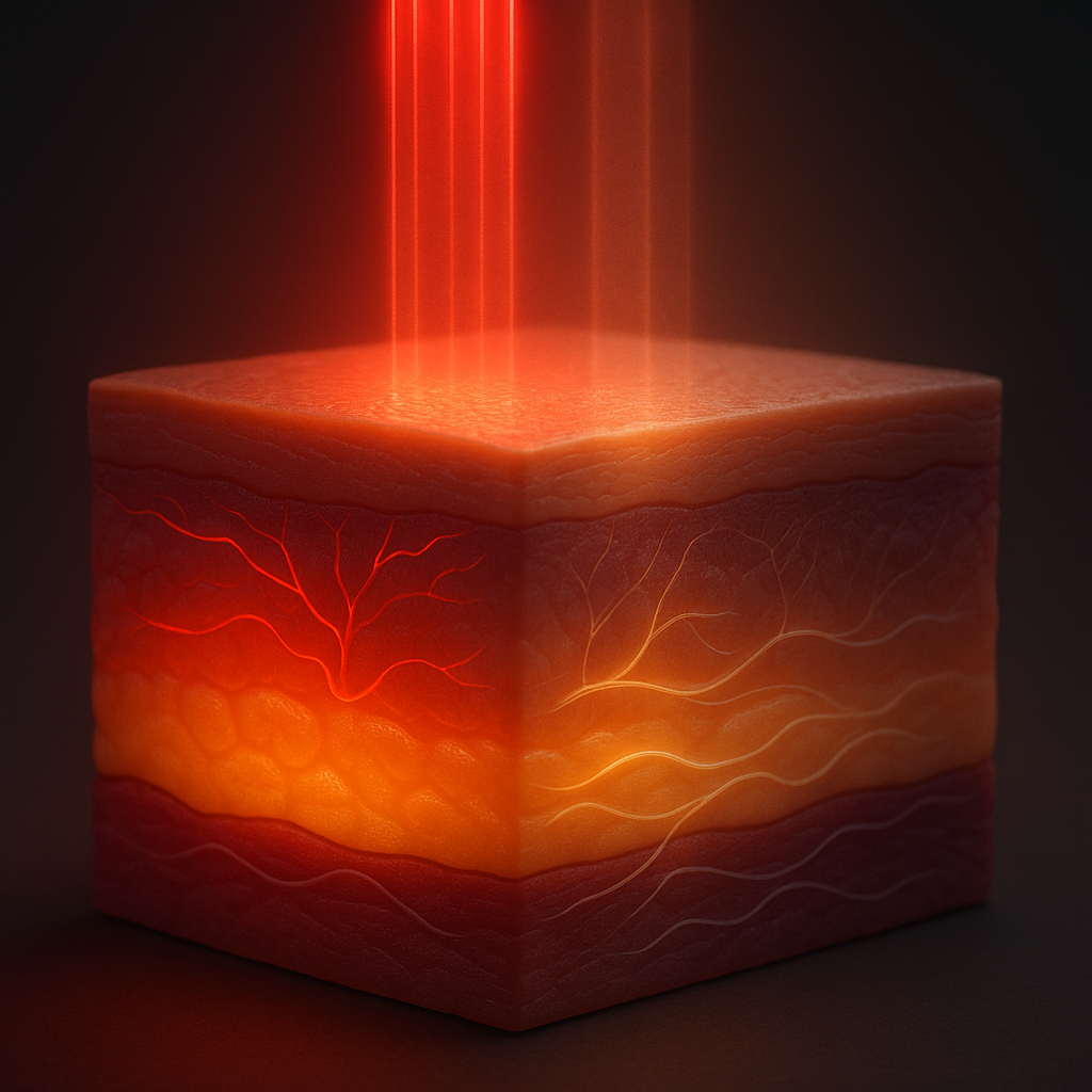 Uses safe red (630–660 nm) and near-infrared (850 nm) light to tighten skin, activate circulation, and support fat release naturally.
